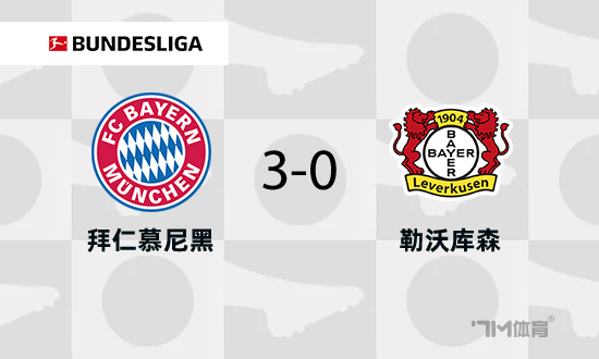 下半场补时3分钟,拜仁3-0勒沃库森。