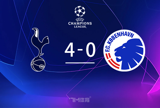 欧冠联赛阶段第4轮,热刺坐镇主场新托特纳姆热刺球场迎战哥本哈根。上半场,约翰逊先拔头筹。易边再战,奥多贝尔、帕利尼亚破门,范德芬超级一条龙个人秀,约翰逊直红,里沙利松补时失点。最终热刺4-0哥本哈根。积分榜方面,热刺8分第7,哥本哈根1分第33。