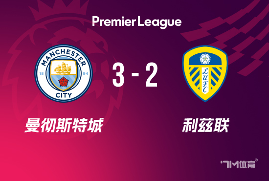下半场伤停补时10分钟,全场比赛结束,最终曼城3-2利兹联。