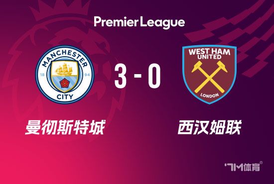 最终,曼城3-0西汉姆。