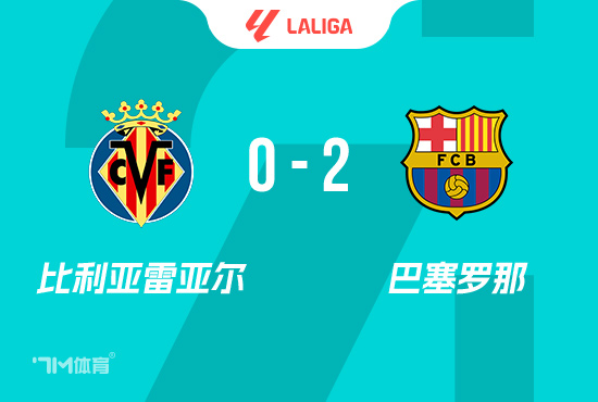 全场比赛结束,比利亚雷亚尔0-2巴塞罗那。
