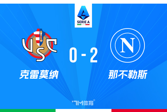 全场比赛结束,那不勒斯2-0克雷莫纳。