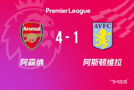 阿森纳4-1终结阿斯顿维拉11连胜 枪手4人破门