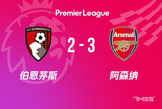 全场比赛结束,最终阿森纳3-2伯恩茅斯。