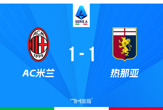 全场比赛结束,米兰1-1热那亚。