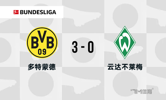 全场比赛结束,最终多特蒙德3-0不莱梅。