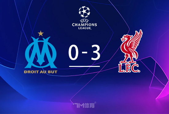 全场比赛结束,最终利物浦3-0马赛。
