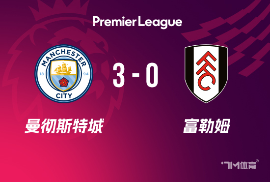 下半场补时3分钟。最终全场比赛结束,曼城3-0富勒姆。