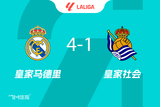 西甲第24轮,皇家马德里坐镇主场伯纳乌球场迎战皇家社会。上半场,阿诺德妙传助攻贡萨洛先拔头筹,赫伊森送点,奥亚萨瓦尔点射扳平,维尼修斯造点+点射,巴尔韦德远射破门。易边再战,维尼修斯再造点+点射。最终皇马4-1皇社。积分榜方面,皇马先赛60分登顶,皇社31分第八。