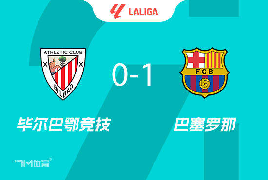全场比赛结束,最终巴萨1-0毕尔巴鄂竞技。