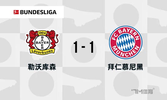 全场比赛结束,最终拜仁1-1勒沃库森。