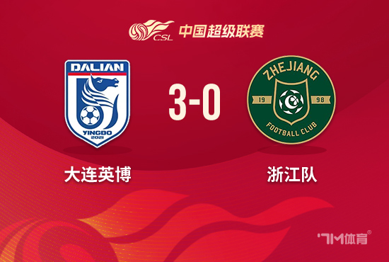 北京时间4月10日19:35,中超第5轮,大连英博坐镇梭鱼湾足球场迎战浙江队。上半场,廖锦涛策动攻势,自己跟进补射破门,刘浩帆、廖锦涛、方昊染黄,刘浩帆补时破门被吹犯规在先;下半场,斯坦丘助攻阿奇姆彭破门,毛伟杰锦上添花。最终,大连英博3-0浙江队收获三连胜,浙江队遭遇两连败。积分榜上,大连英博先赛一场积9分暂时升至第二位,浙江队积2分暂列第8位。