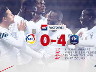 北京时间2019年6月12日凌晨2:45,2020年欧洲杯预选赛继续进行,在H组的一场对决中,法国做客挑战安道尔。上半时比赛姆巴佩单刀打进职业生涯百球首开纪录,随后本耶德尔扩大比分,半场结束前托万倒钩破门。下半时比赛祖马利用角球建功锦上添花,恩东贝莱伤退。最终,法国客场4-0击败安道尔。虽然法国队在本次欧预赛前两轮比赛中表现优异,分别大比分击败摩尔多瓦以及冰 ……