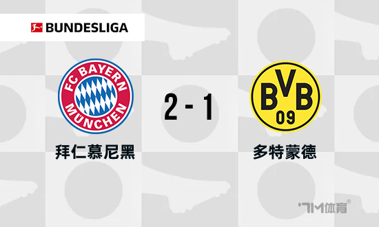 全场比赛结束,拜仁慕尼黑主场2-1战胜多特蒙德。