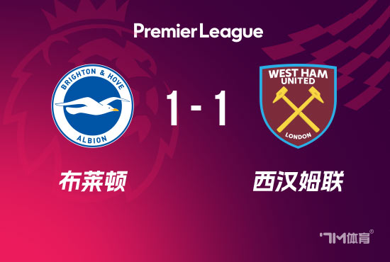 全场比赛结束,布莱顿1-1西汉姆联。