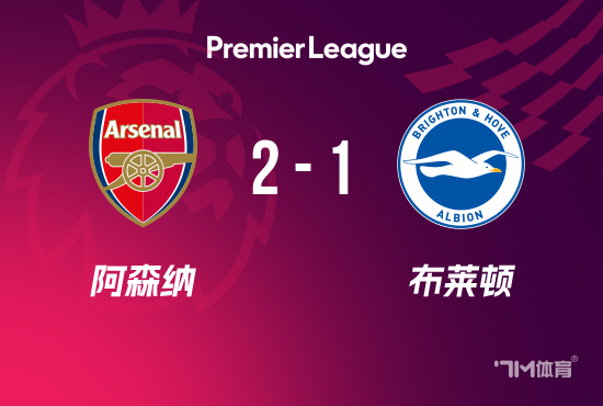 全场比赛结束,最终阿森纳2-1布莱顿。