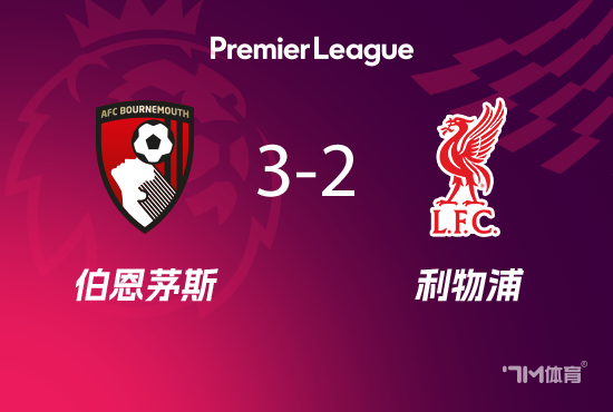 全场比赛结束,利物浦2-3伯恩茅斯。