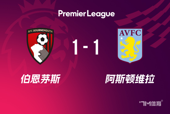 下半场补时4分钟,伯恩茅斯1-1维拉。