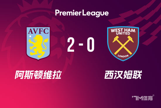 伤停补时4分钟。全场比赛结束,阿斯顿维拉2-0西汉姆。